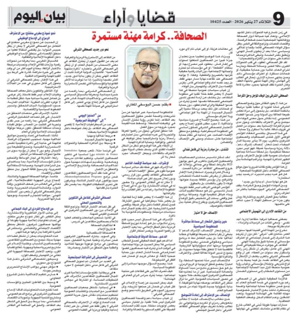 الموضوع نشر على صفحات جريدة “بيان اليوم” بتاريخ 27 يناير 2026 العدد 10425