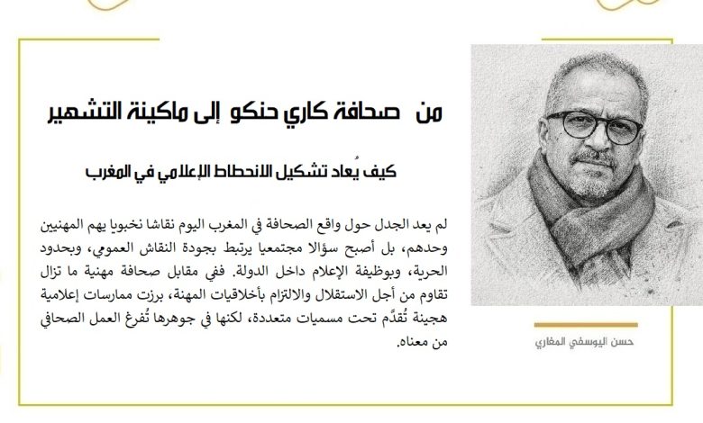 ما يُتداول شعبيا بمصطلح “صحافة كاري حنكو” لم يعد مجرد توصيف ساخر، بل أصبح مفهوما يعكس واقعا مهنيا مختلا، تُفرَّغ فيه الصحافة من استقلاليتها، ويُعاد توظيفها كأداة للدفاع غير النقدي عن السلطة، أو للهجوم على كل صوت معارض لنهج الدولة في تدبير بعض الملفات.